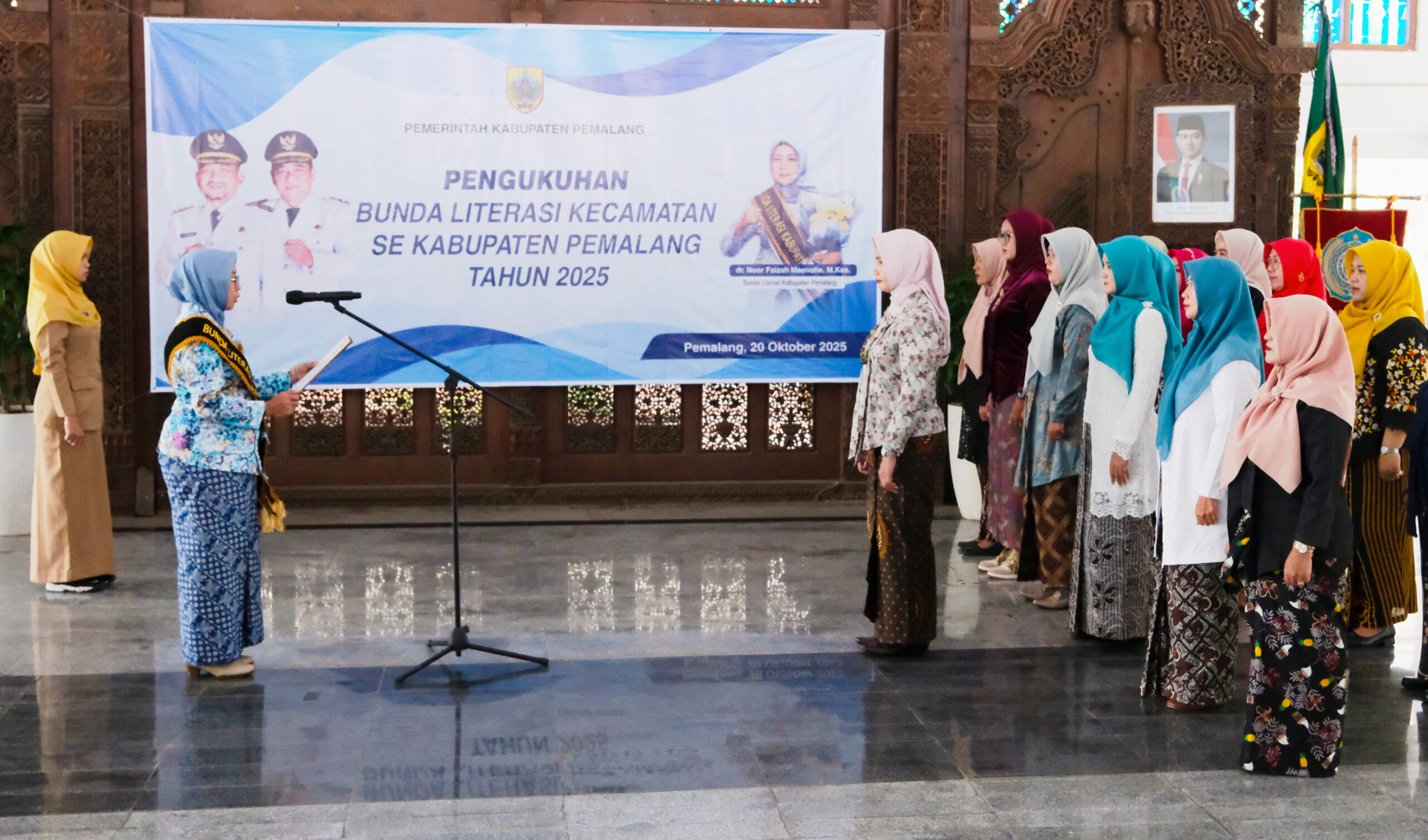 Harapan tersebut disampaikan Bupati usai menyaksikan pengukuhan 14 Bunda Literasi Kecamatan se-Kabupaten Pemalang oleh Bunda Literasi Kabupaten Pemalang, dr. Noor Faizah Maenofie, di Pendopo Kabupaten.