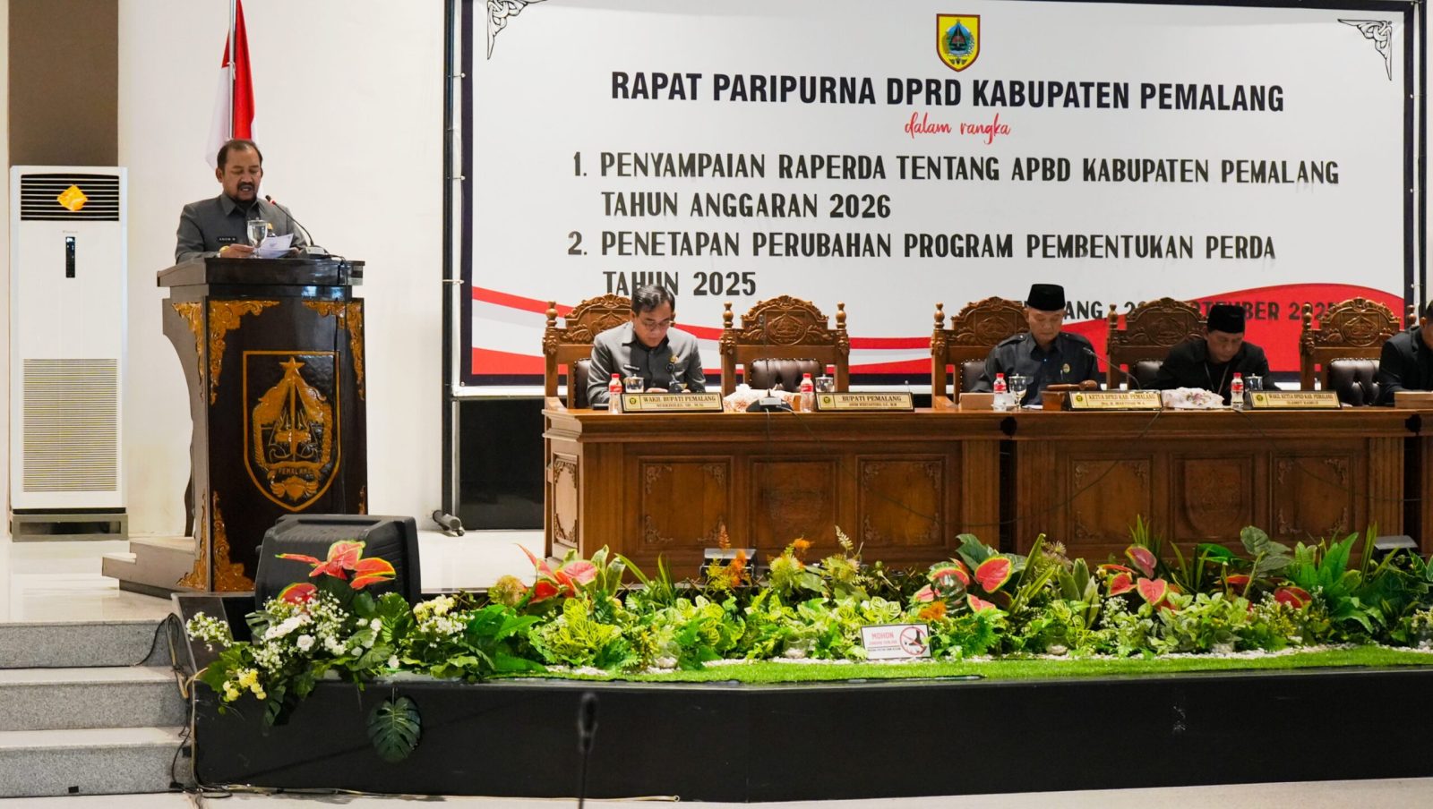 Pesan tersebut disampaikan dalam Rapat Paripurna DPRD Kabupaten Pemalang terkait Penyampaian Raperda APBD 2026 dan Penetapan Perubahan Propemperda 2025 di Ruang Rapat DPRD, Senin (29/9).