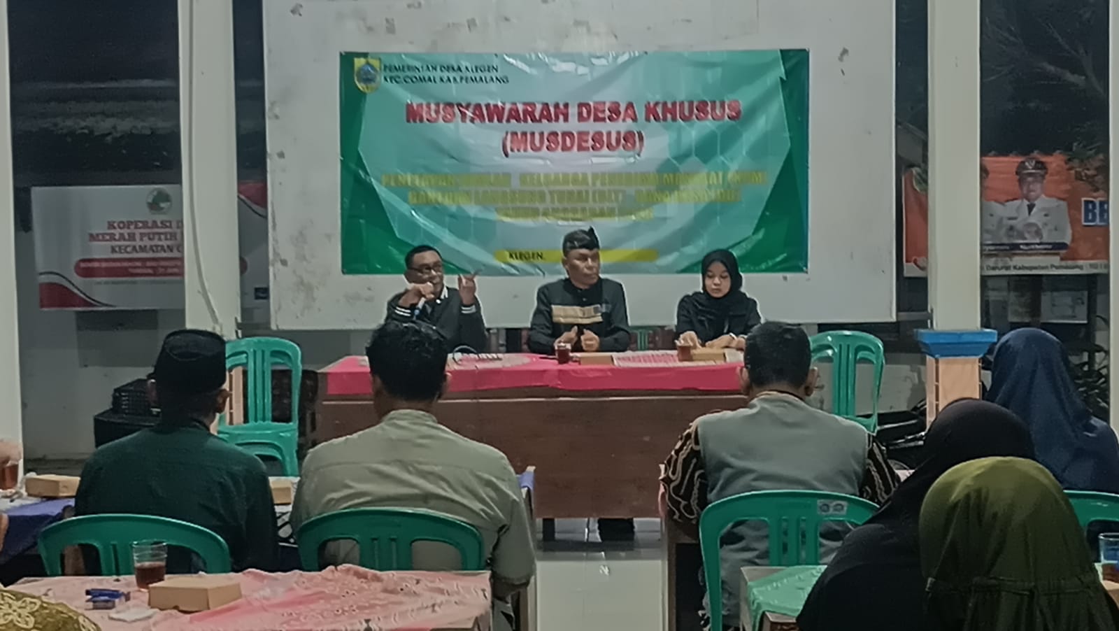 Musdesus dibuka secara resmi oleh Kepala Desa Klegen, Gunawan HS, dan dipimpin Ketua BPD Desa Klegen, Slamet, S.Pd., M.M., yang sekaligus membacakan nama-nama KPM hasil kesepakatan bersama.
