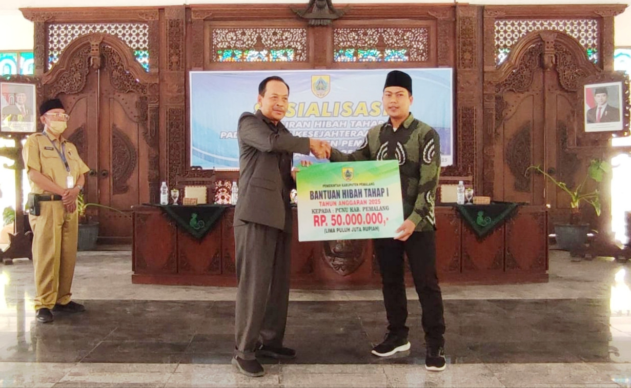 TV PEMALANG.COM – Pemerintah Kabupaten Pemalang menyalurkan dana hibah tahap I tahun 2025 senilai total Rp18 miliar kepada 203 lembaga keagamaan. Penyerahan simbolis dilakukan oleh Sekretaris Daerah Heriyanto dalam acara Sosialisasi Pencairan Hibah di Pendopo Kabupaten, Senin (11/8/2025).