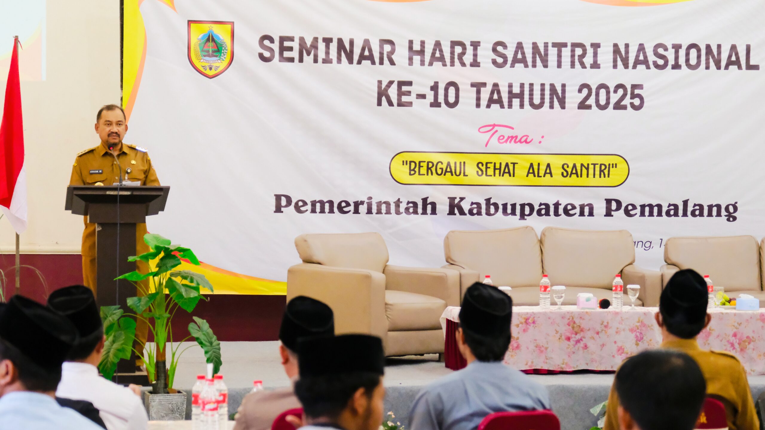 TV PEMALANG.COM – Dalam rangka memperingati Hari Santri Nasional (HSN) Tahun 2025, Pemerintah Kabupaten Pemalang menggelar seminar yang dibuka langsung oleh Bupati Pemalang Anom Widiyantoro di ruang Pandawa Hotel Winner Pemalang, Selasa (14/10/2025).