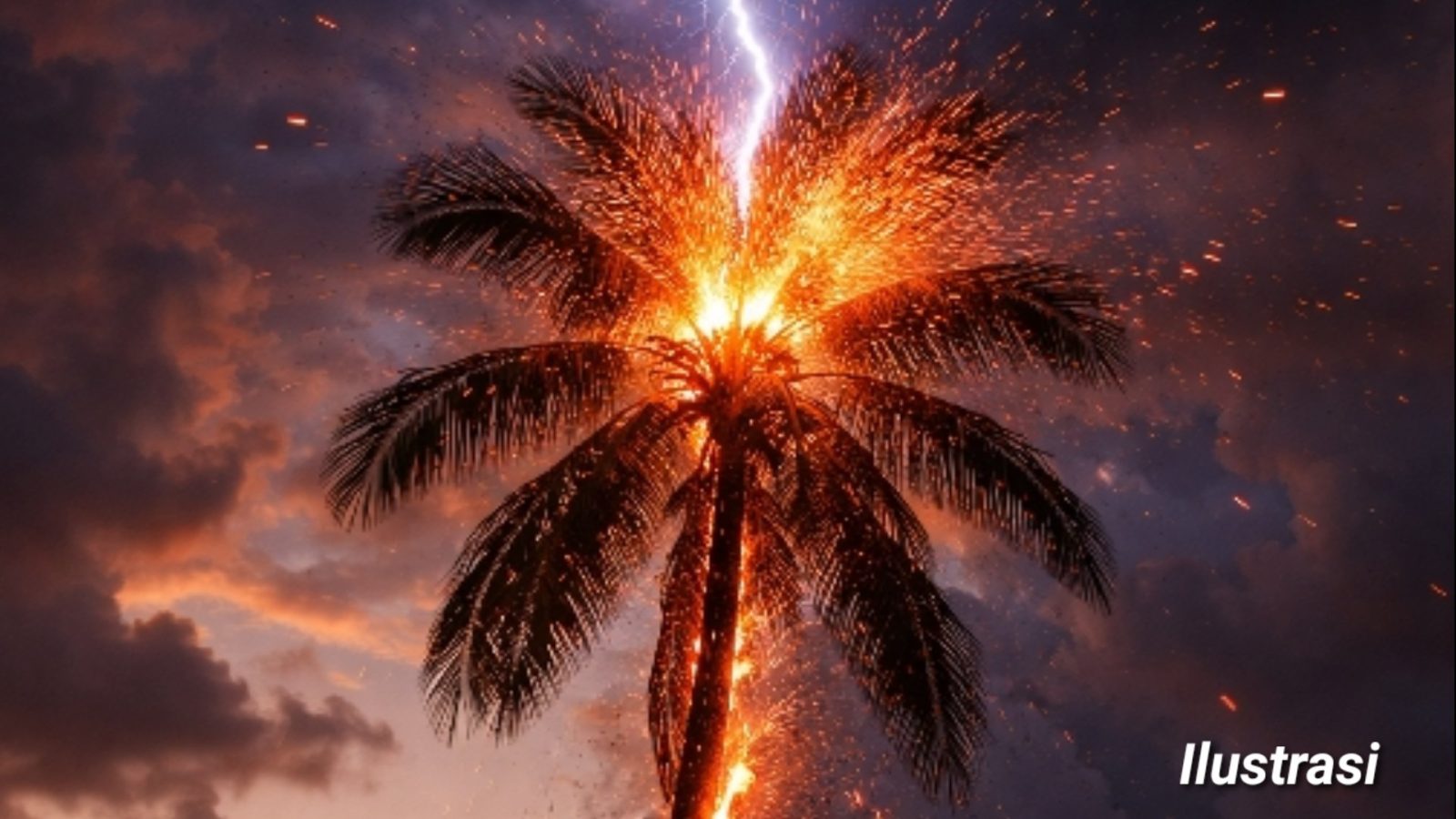 Petir Sambar Pohon Kelapa di Jatirejo, Warga Sempat Dihebohkan